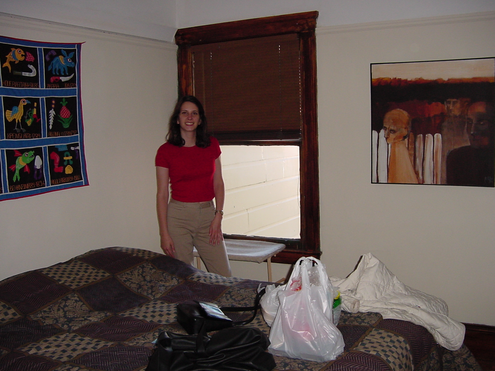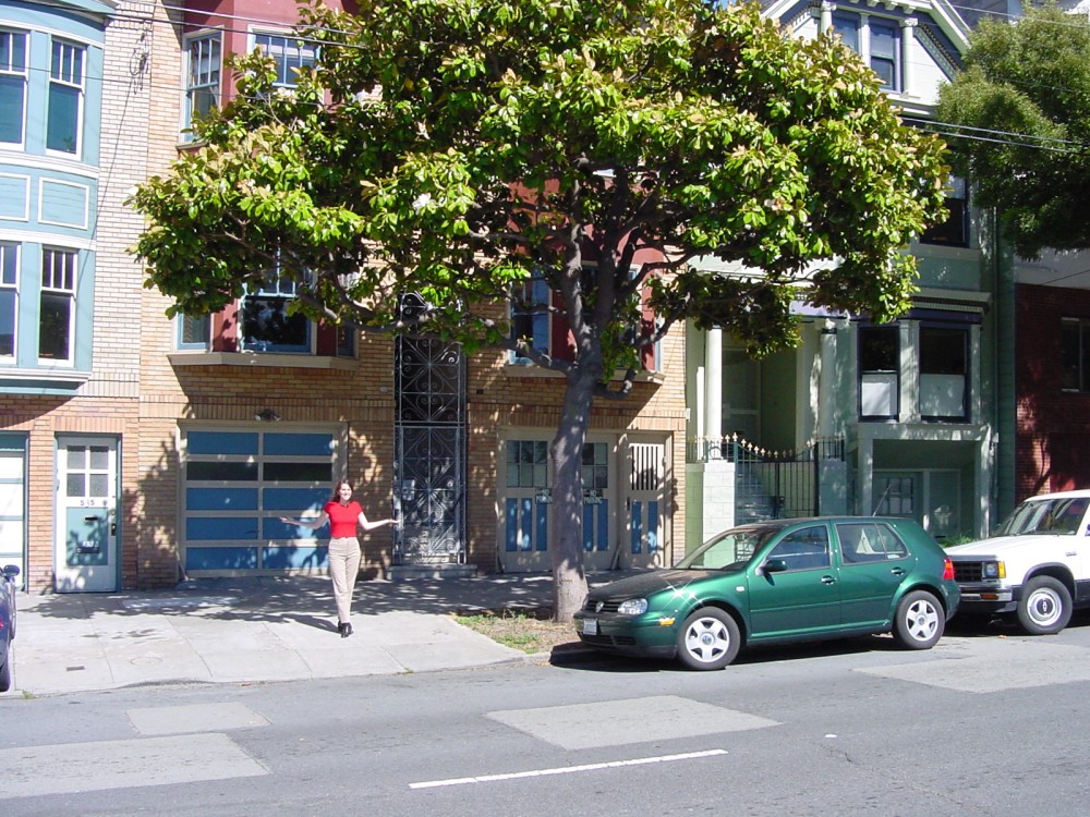 Erika standing in front of apartment under my window